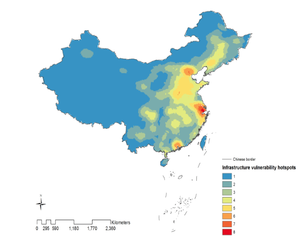 以上基础设施热点区域通过洪涝、干旱等自然灾害体现了中国面对气候变化影响的潜在脆弱性。