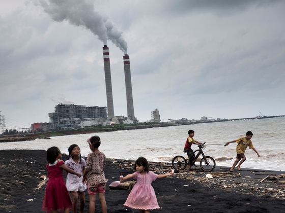 印度尼西亚政府撤回了其减少化石燃料补贴的承诺,图为孩子们在燃煤发电厂附近玩耍。图片来源:KemalJufri/Greenpeace