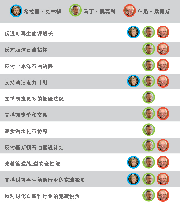 上面这份单子只是暂时性的,桑德斯说过支持的政策不一定会在他正式的气候政策中提到,希拉里没有表明观点的问题也不意味着她以后不会提起。奥莫利的气候观点涵盖了所有问题,不过是否都会实现就不一定了。他的计划甚至比现任总统奥巴马的气候政策还要偏左,共和党人在国会上可是唇枪舌剑地诋毁了总统的气候政策。
