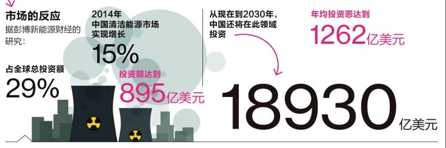 发展清洁能源和限制碳排放是实现节能减排计划的核心。Karishma提及的承诺,源自6月30日的《中美气候变化联合声明》。在这份文件中,中国提出了碳排放在2030年左右达到峰值并尽早达峰的自我要求。届时,非化石能源占一次能源的消费比重也将翻倍,从2014年年底的11.1%提高到20%左右。这些承诺意味着中国的低碳经济建设步伐仍需加速。