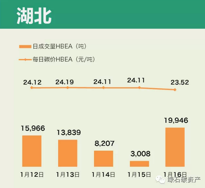 本周继续独领风骚,本周有3个交易日单日成交量过万吨,周总成交量超过6万吨,占全国周总成交量的44.29%。碳价虽有小幅下跌,但仍较为稳定,本周五收于23.52元/吨。