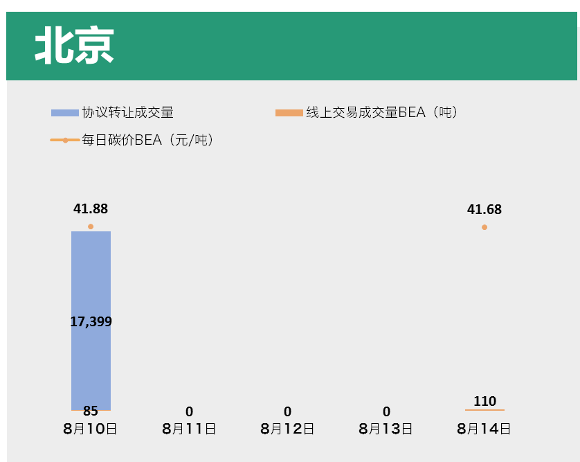 本周北京的BEA仅周一、周五有线上交易产生,但是日交易量都在100吨上下。周一有17,399吨的协议转让成交量,成交额为521,970元。本周北京共成交了17,594吨配额,周均价在30.1元左右,成交量和成交额环比增长超过100倍,得益于本周一的协议转让。
