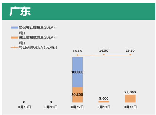 本周广东的GDEA交易情况比较活跃。除了前两日无交易外,其余几天均有5,000吨以上的日均交易量,线上交易总额有1,316,904元。另外,周三有一笔10万吨的协议转让,为本周的GDEA交易总额增加了1,598,000元。本周GDEA交易总量高达180,800吨,成交总额接近300万元,比上周增加近三倍。