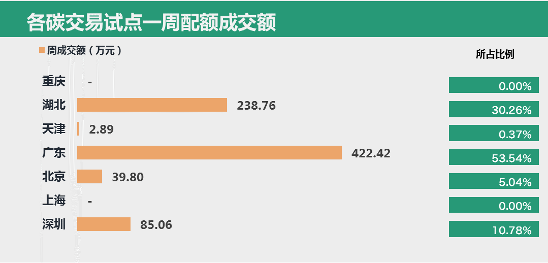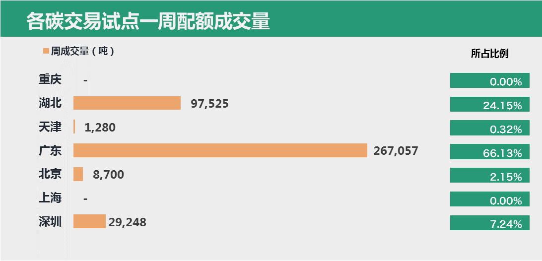 本周,全国碳交易市场共成交配额403,810吨,总成交额为788.93万元。