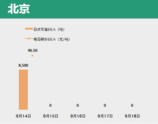 本周北京配额仅有一天交易发生,周一成交了8,500吨BEA,价格46.50元/吨,成交额395,250元,与上周差别不大。