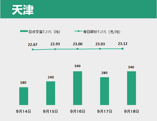 本周天津每天均有百吨级的配额交易,共成交1,380吨TJEA,总成交额31,714元,周均价为22.98元/吨。