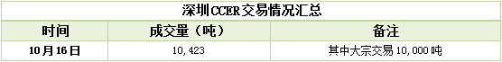 本周深圳CCER成交10,423吨,交易情况可见下表: