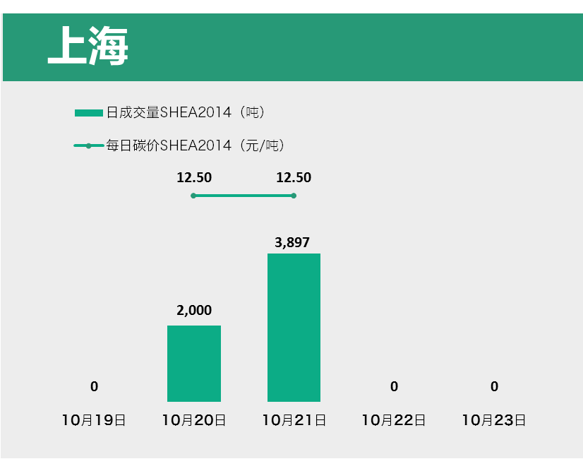 上海碳市本周有两天交易产生,共成交配额5,897吨,成交额73,712.50元,价格为12.50元/吨。