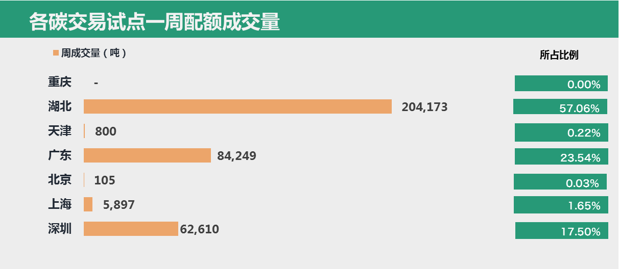 本周,全国碳交易市场共成交配额357,834吨,总成交额为859.35万元。