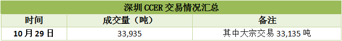 本周,深圳碳市有CCER交易33,935 吨,包括大宗交易33,135吨。