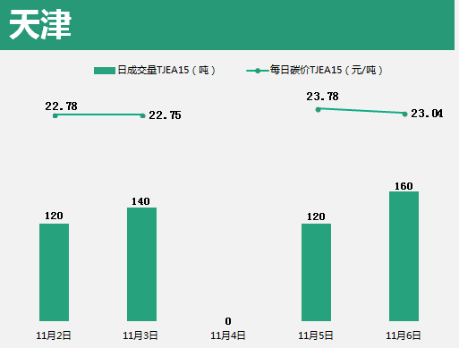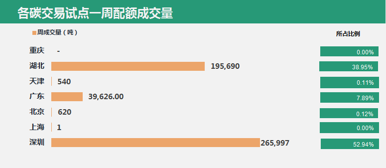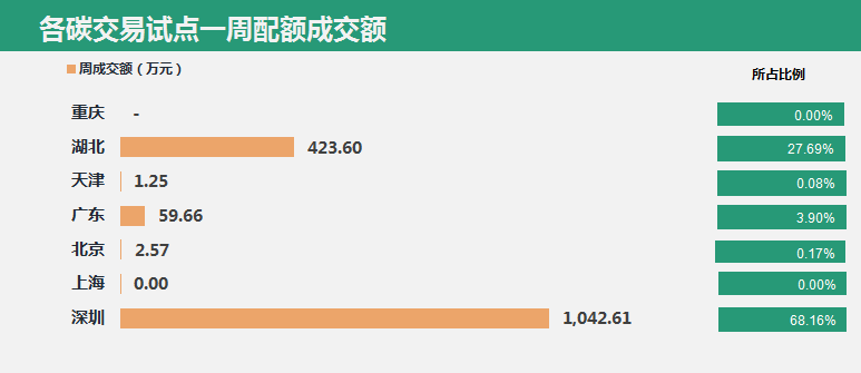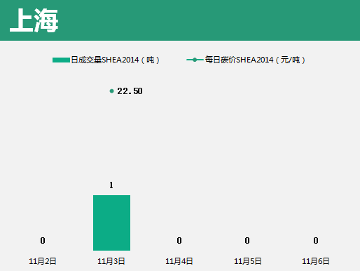 上海碳市本周仅周二一天有交易产生,共成交配额1吨,成交额22.50元,价格为22.50元/吨。