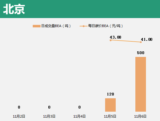 本周北京碳市仅周四周五两天有交易产生,BEA共成交 620吨,成交额25,660元,平均碳价为41.39元/吨。