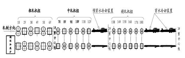 (2)控轧控冷技术:采用特殊的纹式管,让轧件在穿水装置中运行更流畅,降低堵钢机率;关键零部件采用高耐磨的新材料;根据轧件速度、温度等对水流量、压力实现自动调节与控制。