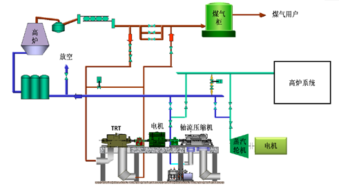 煤气透平与电动机同轴驱动高炉鼓风机组技术(BPRT),是把高炉煤气的余压余热转化为机械能的节能装置。